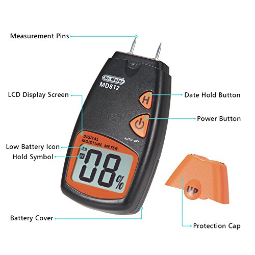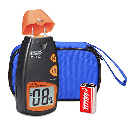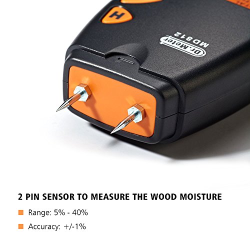 Dr.meter Digital Wood Moisture Meter,2 pins Portable Wood Water Moisture Tester , HD Digital LCD Display with 2 Spare Sensor Pins and one 9V Battery(Both Included) Range 5% - 40%,Accuracy: +/-1%