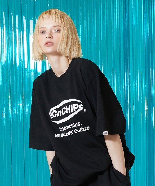 맥앤칩스(MCNCHIPS) 빅 스퀘어 로고 티셔츠 [블랙]
