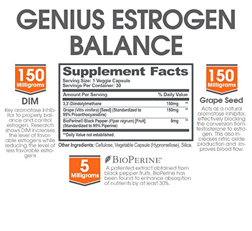 (The Genius Brand)/Vitamins Dietary Supplements/Herbal Supplements/DIRECT FROM USA/Genius Estrogen Balance ? DIM Supplement w/ Grape Seed Extract, Dual Estrogen Blocker for Men ...