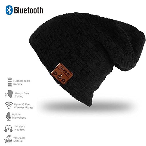 -. Feature : Warm Comfortable and Soft - 100% Soft,double knitted beanie,keep your head warm and allows you to listen to your music without having to wear additional headphones,the bluetooth stereo headset brings you great sound quality,style and comfort,perfect for gcrophone on the left earpiece allows you to skip back and forth through your playlist, answer and hang up calls without having to use yo / The Bluetooth Version 3.0 - V3.0+EDR Bluetooth version with forward/backward compatibility to connect to all other Bluetooth enabled media player devices, available for most of devices with Bluetooth function.The control panel built-in stereo speaker andgcrophone on the left earpiece allows you to skip back and forth through your playlist, answer and hang up calls without having to use yod / Long-lasting Enjoyment of Music - Built in rechargeable Li-Ion battery,about 6 hours talking/playing time, 2.5 hours charging time,60 hours standby, so you have less time charging and more time doing.(USB charging cable included) / Removable and Convenient Design - Unprecedented zipper and velcro design to remove or re-install headset speaker driver and battery component easily in seconds from the beanie for washing purpose. / The best Christmas Gifts - Perfect sound quality and super bass effect, you can enjoy your music while you are walking, hiking, jogging, skating, fishing...Keep you warm in chilly days.you can send family members, friends , excellent Christmas gifts New Years Gifts.