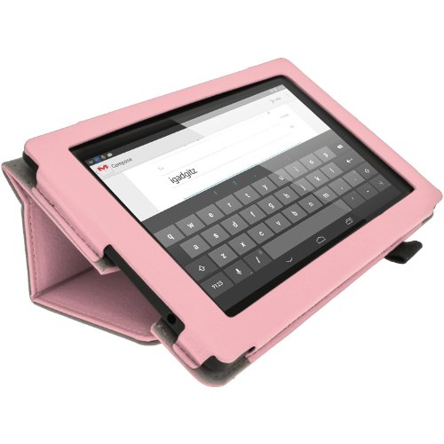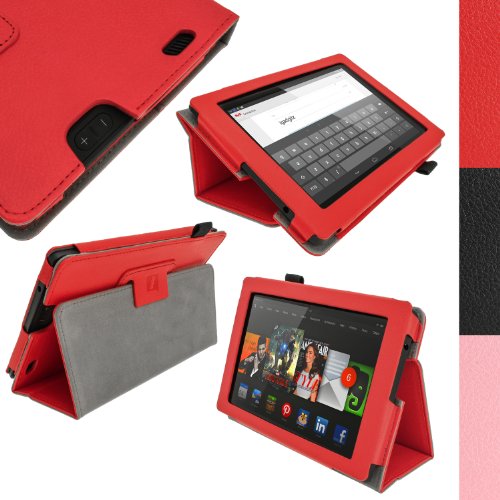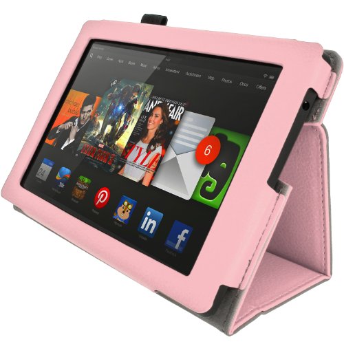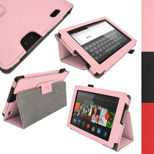 iGadgitz Luxury Pink PU Leather Folio Case Cover for Amazon Kindle Fire HD 7" 2nd Gen 2013 with Multi-Angle Viewing Stand + Auto Sleep/Wake + Screen Protector