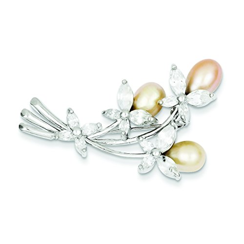 -. Title : Jewels Obsession's Sterling Silver Freshwater Pearl & CZ Floral Pin