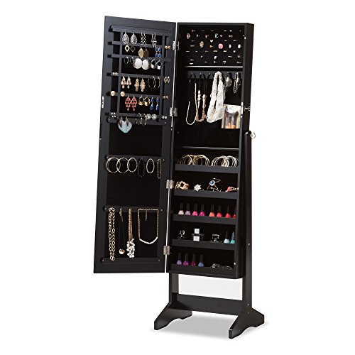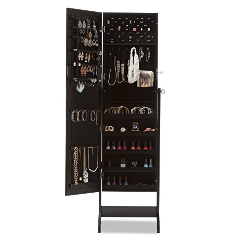 Studio : Wholesale Interiors., Inc Publisher : Wholesale Interiors., Inc Binding : Kitchen Product Description Combining elegance and superior function in one piece, the Anette Brown Finish Wood Free Standing Cheval Mirror Jewelry Armoire provides you with a better way to store your jewelry. Modern and contemporary, this full length cheval mirror slides open to reveal a deep, line jewelry storage compartments. Engineered wood construction comes in your choice of finish, the ideal addition to any bedroom. This stylish piece of furniture is great for ladies that love their jeweler displayed in a classy way. It makes it easy to choose your jeweler in the morning without the frustration of looking for loose/missing pieces. It stores all of your jeweler safely and in a organized manner. Made in China, the Anette jewelry armoire requires assembly. 0