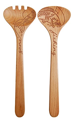 (Talisman Designs)/Kitchen Dining/Tableware/DIRECT FROM USA/Talisman Designs "Gone Fishing" Etched Solid Beechwood Salad Servers