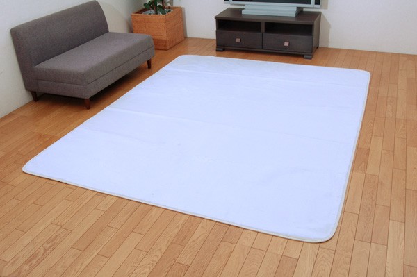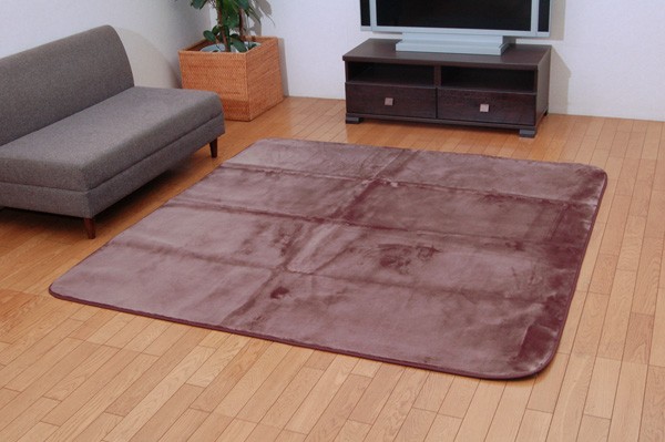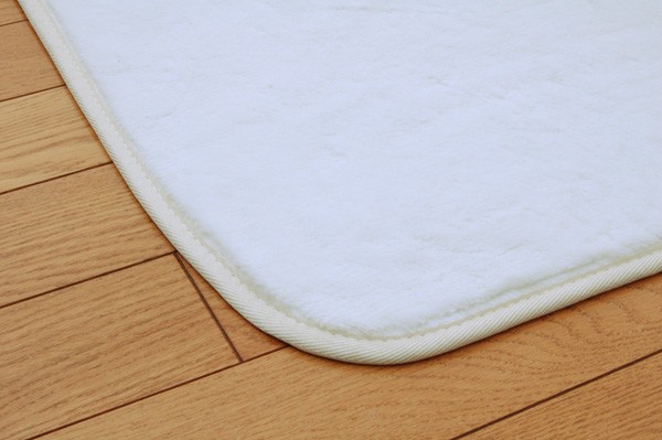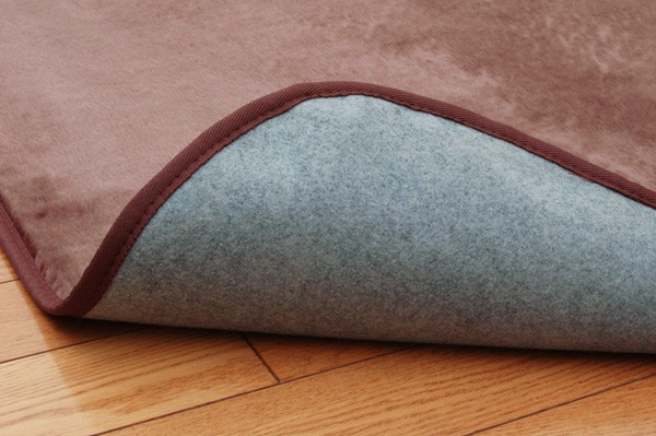 表地にはアクリル糸を使用してます。滑らかで柔らかく、あたたかみのある肌触りです。フローリングを傷つけにくいよう、裏には不織布を貼っています。電気カーペットカバーとしてもご使用頂けます。ご家庭の洗濯機で洗えるウォッシャブルタイプです。