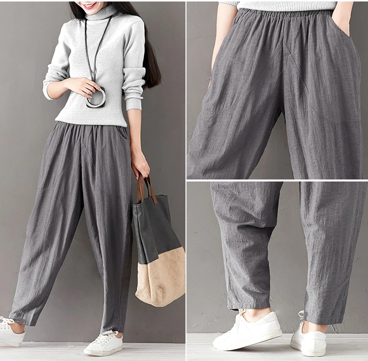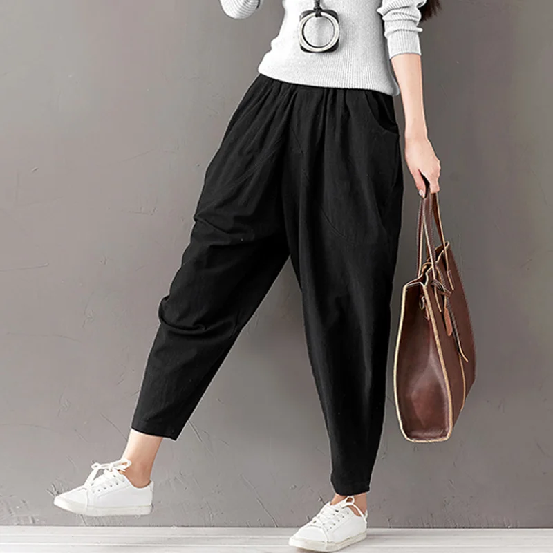 Style:Slim,Loose,Casual,Cotton Linen,Harem Cross-pants,Large Size
