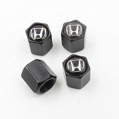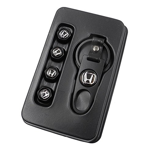INCART Universal Steel (4pcs) Car Tire Valve Stem Air Caps Cover + (1pcs) Keychain for Honda Black