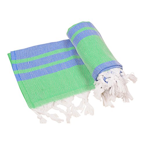 Turkish peshtemal towels are ultra lightweight and highly absorbent. They are especially great for the beach as they dry fast and don't pick up sand like terry towels. Another good thing about these towels is that they get softer after each wash without requiring fabric softener and more absorbent.