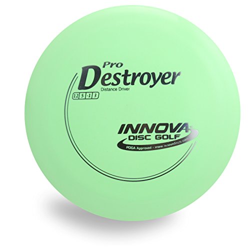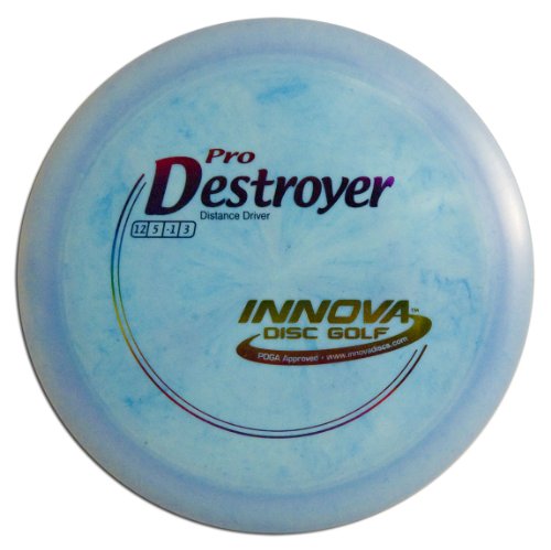 Studio : Innova Publisher : Innova Binding : Misc. Product Description The Destroyer is a very fast stable to overstable long distance disc golf driver. This disc is much like a faster Tee-Rex. Great disc for sidearm throwers and those with lots of power. Can handle headwinds and throws with off axis torque. This version in the PRO plastic will fly slightly less stable than the STAR version and will be slightly less durable. Typically Pro plastic molds a bit taller and domier than Star plastic so it has slightly better glide. 0
