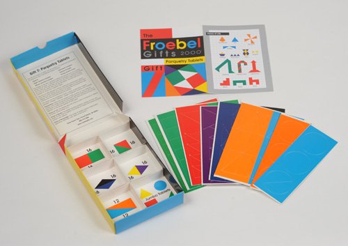 Studio : Froebel USA Publisher : Froebel USA Binding : Toy Product Description Seventh in a series of Froebel Gifts, this set represents the surfaces of the previous Gifts. Moving from 3-D to 2-D is the next level of abstraction. The child will learn recognize and name the various shapes, see similarities/differences, and experience patterns of symmetry. The 7th Gift guides children from constructing objects to representing them in two dimensions. Includes 172 glossy colored (heavy paperboard cardstock) pieces and an instruction booklet. The 7 different shapes include: Square (1" and 2") Equilateral triangle (1" and 2") Right-angled isosceles triangle (1" and 2") Right-angled scalene triangle Obtuse isosceles triangle Circle (2") Half circle (2") Each shape comes in a pair of complementary colors (orange/blue, red/green, yellow/purple, etc.). Jumbo versions of the circle, square and triangles are provided for younger children under age 4. 0