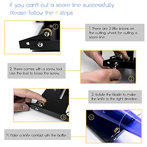 DURABLE & LONG USING TIME - This glass bottle cutter machine cutting tool for wine bottles comes with 2 cutting wheels . One of them is for replacement . There are 3 blades on a cutting wheel , you can use them one after another for a long time .One cutting wheel lasts over 600 cuts . And this cutting machine is made of metal , so it is more durable than the palstic bottle cutting kit