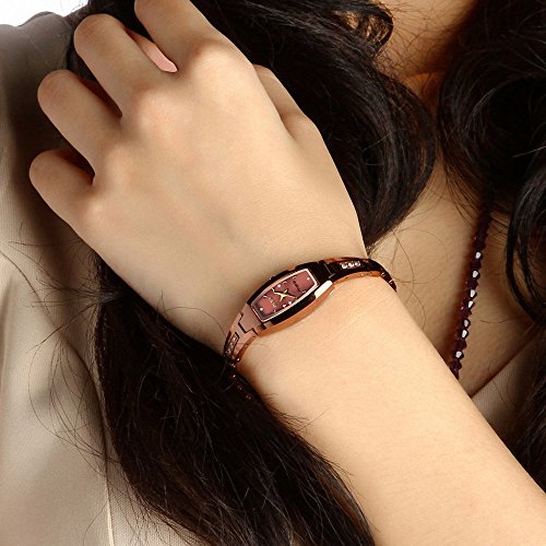 -. Feature : Japanese quartz movement with analog display / Rose gold-tone bracelet watch, crystal-accented band,Gorgeous watch for ladies, girls. The band is designed as lady's wrist arc, matches with smooth stainless back cover,The band is designed as lady's wrist arc, matches with smooth stainless back cover,will not hurt your skin or cloth at any case,prefect gift for ladies,girls,women's.Lovely Presented. / Width 16mm stainless steel elegant rectangle case with crystal accentede hour markers, Synthetic-sapphire dial window; fold-over clasp with double push-button safety, comfortable and easy to wear. prefect suitable for every occasion (birthday, business, party,wedding,anniversary,christmas), also a great gift for womens and girls / Ultra-thin case of 7mm thickness; 54g/Weight; 8mm band width. Gift-wrap available / Water resistant to 30 m (99 ft): In general, withstands splashes or brief immersion in water, but not suitable for swimming