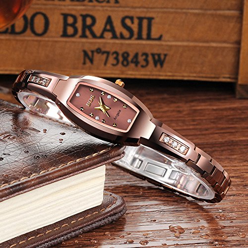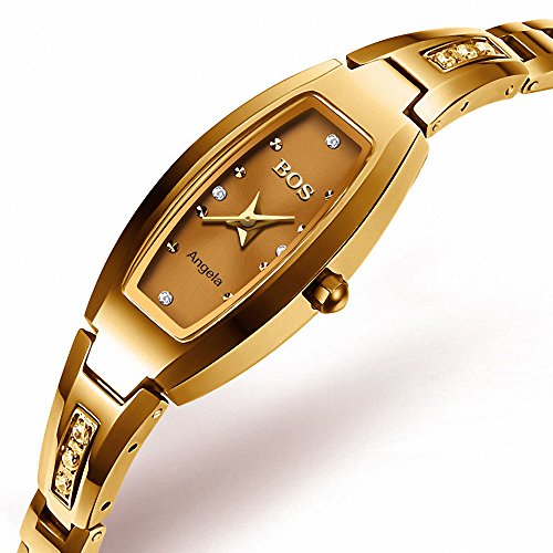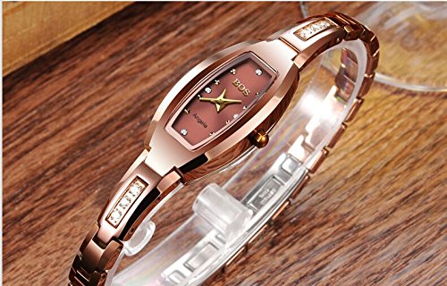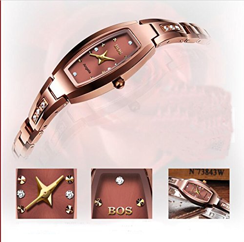 -. Title : BOS Women's Quartz Watch Crystal Accented Rose Gold Stainless Steel Bracelet Wrist Watch