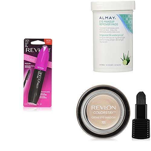 -. Title : Revlon Complete Eye Collection + Almay Longwear & Waterproof Eye Makeup Remover Pads - Blackest Black Ultra Volume Mascara & ColorStay Crème Eye Shadow - Crème Brulee