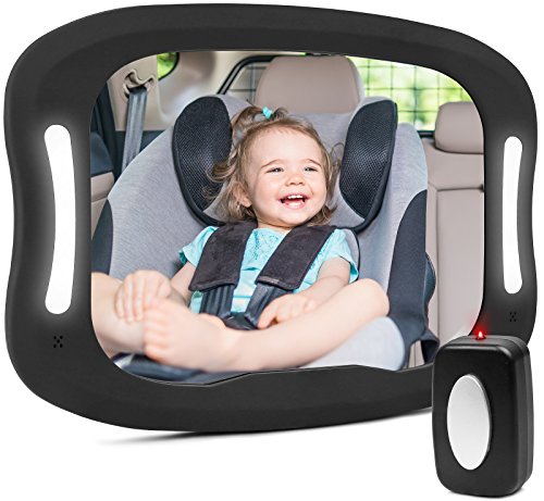 BABY CAR MIRROR WITH REMOTE CONTROL SOFT LED LIGHT SHATTER-PROOF ACRYLIC BABY MIRROR FOR CAR, REARVIEW BABY MIRROR-EASILY OBSERVE BABY'S EVERY MOVE, SAFETY AND 360 DEGREE ADJUSTABILITY