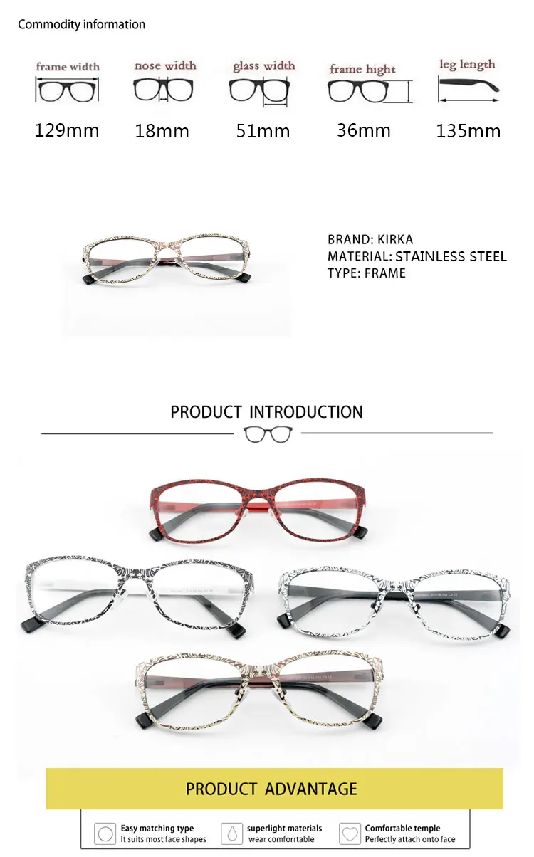 Name:Kirka High Quality Level Women Metal Stainless Steel Eyeglasses