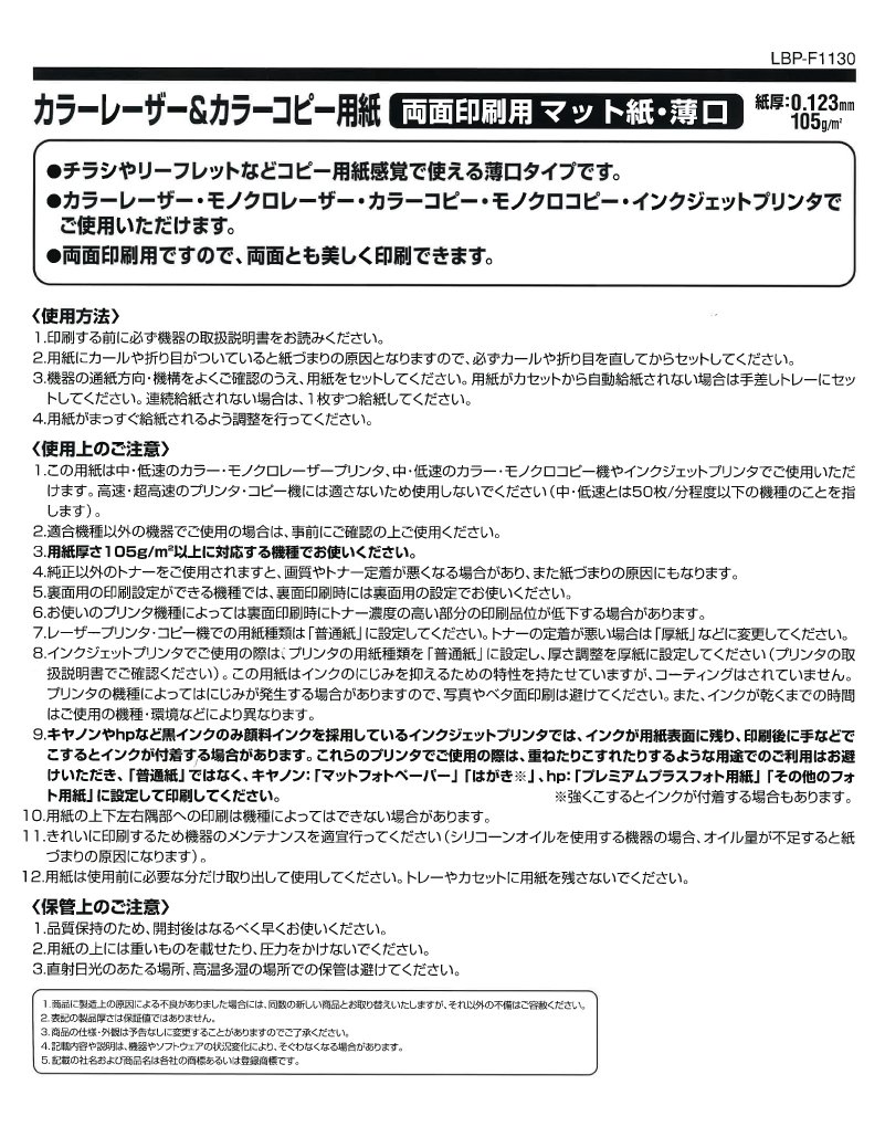 LBP-F1130 100 pieces Kokuyo color laser and color copy paper double-sided printing matte paper A3 light soy (japan import)