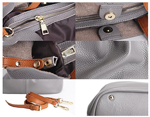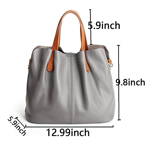 -. Feature : Material:High quality genuine cowhide, solid color, Not easy to fade. Soft, Delicate, Durable. / Dimensions:33cm*15cm*25cm/13.0"*5.9"*9.8"(L*W*H), Handle length:15cm/5.9",with an adjustable strap 125cm/49.2". / Practical Internal Structure:A main big compartment, roomy interanl has a detachable zipper pocket,with one buckle in both side. Three small pouches in the detachable pocket, two in a side, another zipper one in the other side. Keeping wallets, umbrella, iPad, mobile phones, planner, pens, coin purse and other daily essentials well organized. / Exquisite details and Quality hardware:Thicker handle, solid and strong bearing capacity. Perfect tailoring, locomotive alignment. High-grade zipper, feeling smooth, improving the grade. High quality hardware zipper closure, using steel ion plating polishing, preventing belongs from falling out. Adjustable shoulder strap, making your more comfortable when handing. With four rivets in the bottom,durable and wearable, preventing the bottom cortical wear effectively. / Perfect for all occations:Working,shopping, daily life, traveling,school and business, etc. A great gift to your friends and family. Suit for all seasons, never out of style. Upgrade your femine elegance.