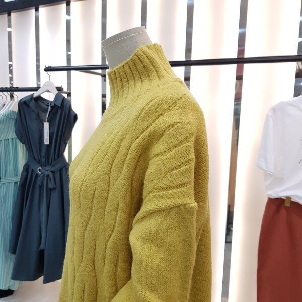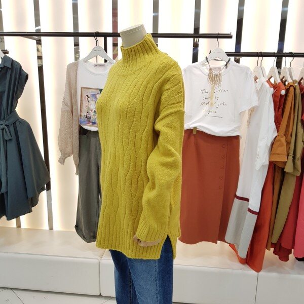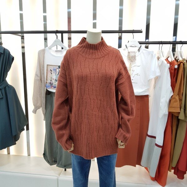 부드럽고 따스한 터치감의 폴라넥 니트입니다.전면 꽈배기 짜임과 적당한 기장감으로 여러 아이템과 매치하시기 좋습니다.