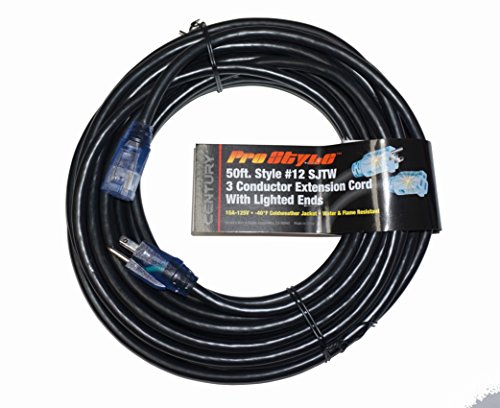 ProStyle 50ft. #12 SJTW 3 Conductor Extension Cord with Lighted Ends - Black