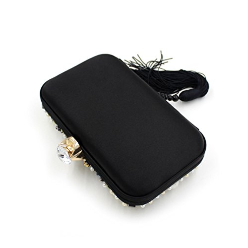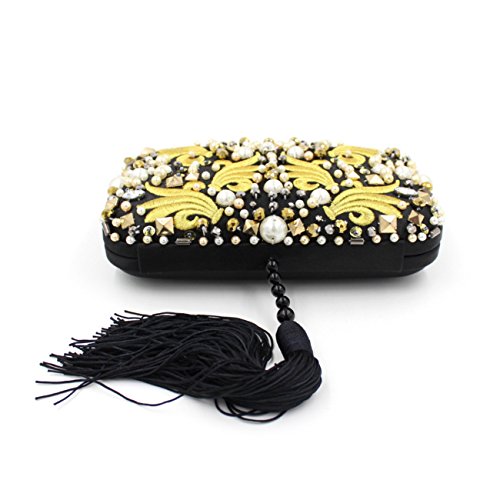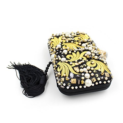 -. Title : Fit & Wit Womens Embroidery Tassel with Cascading Evening Cocktail Wedding Party Handbag Clutch Purse - Black