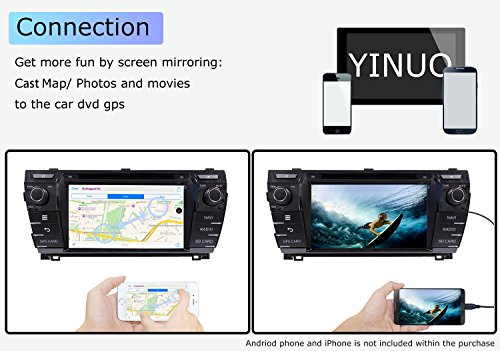 - Title : YINUO Android 4.4.4 1024*600 8 inch Touch Screen Car DVD Player GPS Stereo for Toyota Corolla 2014 without JBL system In Dash Navigation Receiver support AM/FM Radio/Screen mirroring/Bluetooth/Built-in Wifi Hotspots/3G/OBD2/DVR/AV-IN with Free External Mic & 8GB Map Card as gift