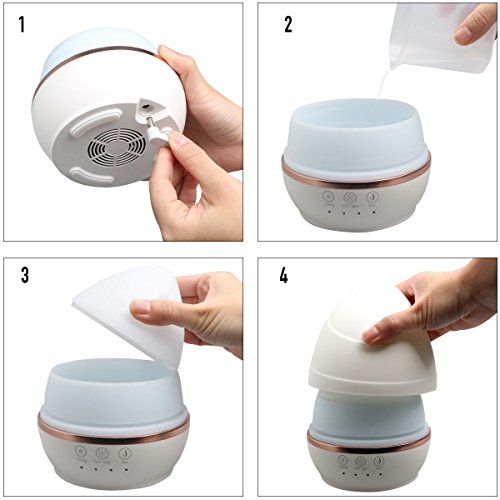 - PERFECT TO ACCENT YOUR HOME LIVING SPACE,SPA,SPAROOM,OR OFFICE:A Striking Beauty of a Design,Easy to Refill,Great as a gift,pure white cool for all rooms,7 different pastel color lights,super easily operated,perfect size for almost any location,Ultra quiet,makes this the most unique and versatile oil diffuser in existence