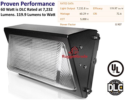BRIGHT LIGHT – The 60 watt is rates at 7,232 by DLC. 7,232 Lumens can replace a 400-500W HPS/HID/HALIDE light. 5000K light color ensures a bright clear light. Over 100 degree angle creates a wide light distribution.