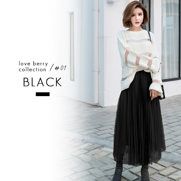 ひざ下まであるミモレ丈なので、シンプルでコンパクトなトップスがおすすめ。