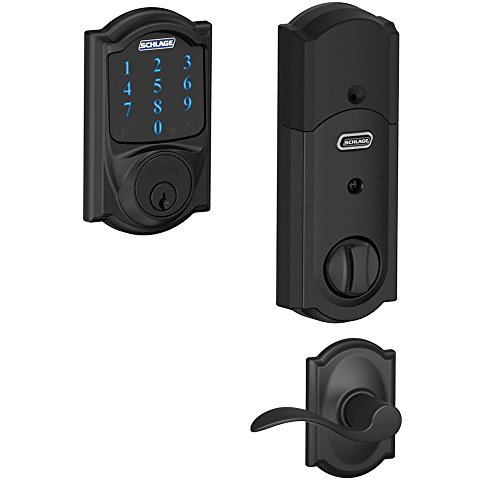 -. Title : Schlage BE469 CAM622 Touchscreen Deadbolt w/ Alarm & Lever in Matte Black