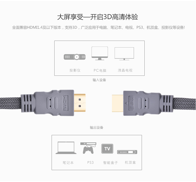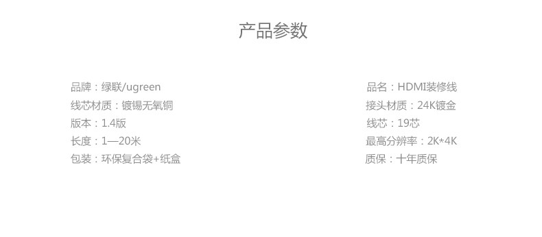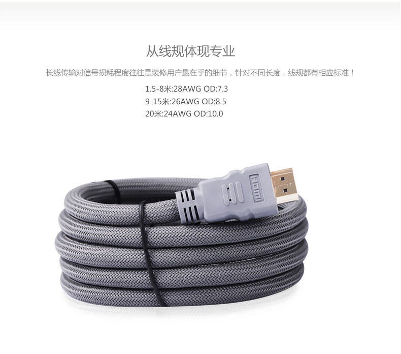绿联hdmi线 高清线1.4版装修KTV电影院工程影音布线2/3/6/7/9米12