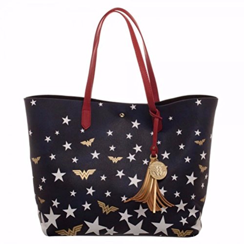 -. Brand : Main Street 24/7 -. Color : multicolor -. Department : unisex -. EAN : 0609753302197 -. Feature : WONDER WOMAN TOTE BAG Oversized Tote Bag Features Metal WW Shield Charm -. ProductGroup : Apparel -. ProductTypeName : LAGE -. Size : One_Size -. Title : Wonder Woman Logo and Stars Oversized Tote Bag -. UPC : 609753302197