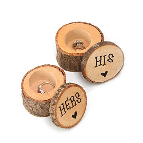 Sorive Wooden Printed "HERS HIS "Love Heart Shabby Chic Rustic Wedding Ring Bearer Box