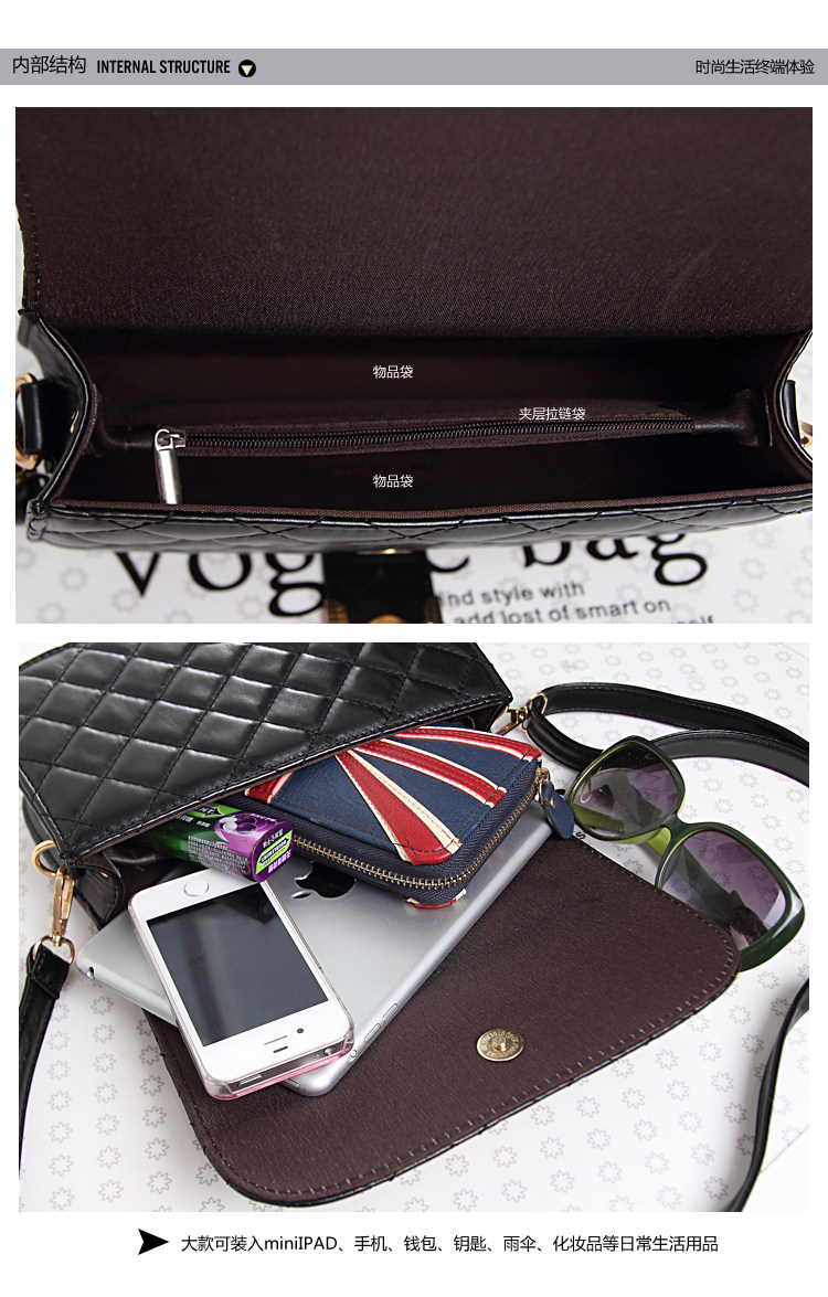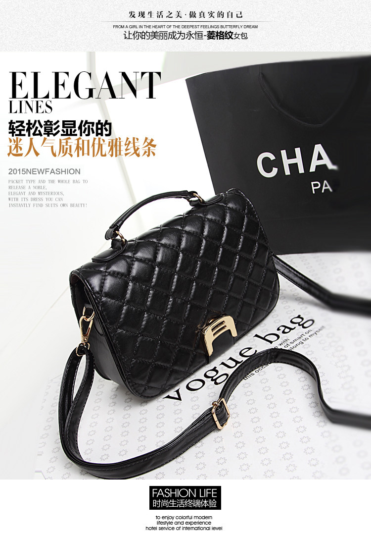 2015新款韩版潮女欧美时尚女包斜挎包单肩手提包菱格小包包