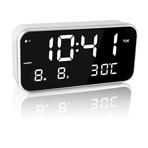 -. Title : EAAGD電子LED大スクリーンデジタルメロディー目覚まし時計– ACアダプター/USB給電、非常に簡単な操作設定、同時に多機能付き アラーム、日付表示、リアルタイム温度表示、曜日表示、三組アラーム設定可能、明るさ調節可能、25曲入りメロディー、三段階調節可能のボリュームレベル