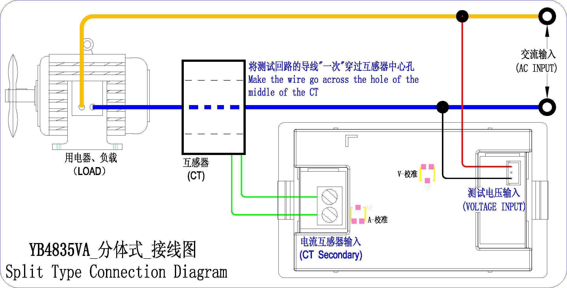 Split: easy installation, transformers and instrument separation, transformers can be installed in accordance with the actual position measurement (can be lengthened transformer secondary side of the lead, to achieve the desired mounting position)