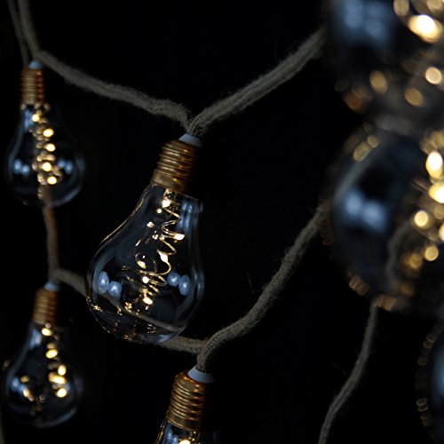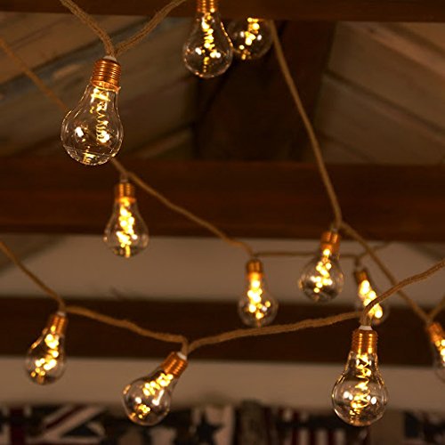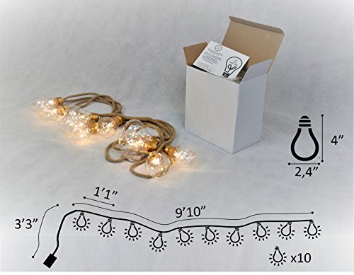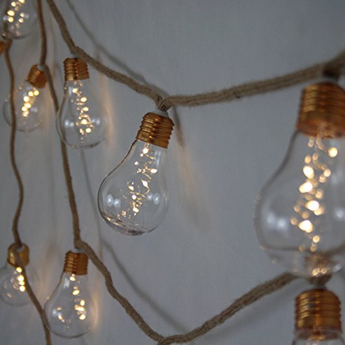 [NEW NORDIC DESIGN] LED Globe String Lights, Battery Operated Vintage Holiday Lights – 13 feet Jute String & 10 Clear Energy-efficient Bulbs – Warm White