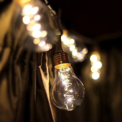 - UNIQUE VINTAGE STYLE PRODUCT WITH PREMIUM QUALITY. This is a product you will find nowhere else and we only have a limited amount in sales. 10 Clear plastic bulbs with golden E27 base. 5 warm white LEDs in a spiral in each.