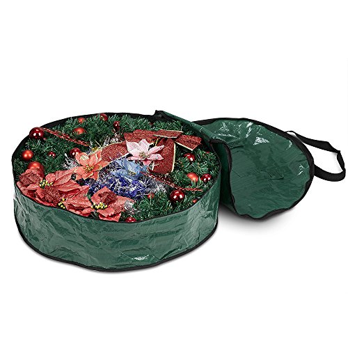 Studio : ProPik Publisher : ProPik Binding : Kitchen Product Description This Wreath Storage Bag by ProPik is exactly what you have been looking for to safely and properly store your holiday wreaths once the season has concluded! You know you can depend on our team here at ProPik to provide you with the innovative storage solutions that will save you valuable time, prevent hassle and make your life easier. When it comes to storing all of your holiday decorations, we have got you covered. Made out of ultra durable tear resistant plastic material, our wreath storage bags are stronger and sturdier than most others. They measure 36" x 8", making them the perfect size for standard 36" circular Xmas wreaths, ribbon wreaths, pine cone wreaths, etc. - Designed to fit 36" wreaths - Made out of strong tear resistant plastic material - Equipped with carrying handles Crushed wreaths can appear drab, wreaths with missing components look less than impressive and dusty wreaths are nearly impossible to clean. Hurry and order your wreath bag so you can store your door decorations with peace of mind once the holiday season is over. Click 'ADD TO CART' now! Please Note: Our wreath bags are not crush-proof, so it's recommended you store them on a top shelf in the garage, closet or attic. COMPANY INFORMATION We offer a wide selection of holiday storage bags and boxes ranging in size, color and finishes so you can be sure to find one that fits your home and holiday decor perfectly. Our goal is to be a part of your family traditions for years to come and we stand behind every item that we sell. ProPik searches worldwide and putting in the utmost effort to bring the highest standard quality production to meet consumer's satisfaction 0