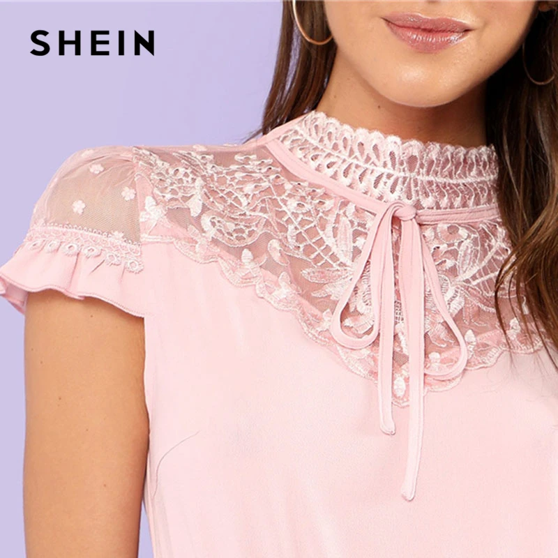 Decoration: Embroidery, Contrast Lace, Sheer, Contrast Mesh, Button, Tie Neck, Fr