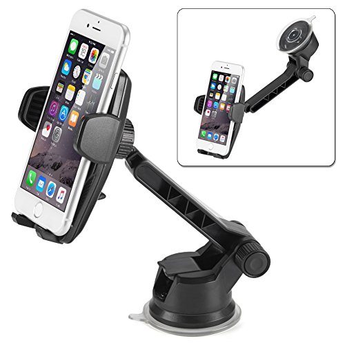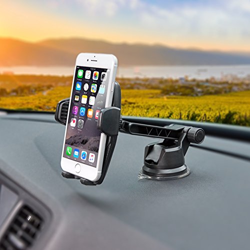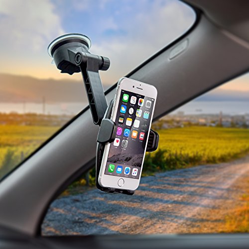iKross Auto Lock Dashboard / Windshield Car Mount Cradle Smartphone Holder 360 Degree Rotation for iPhone X, 8, 8 Plus, 7, 6s, 6, Samsung Galaxy S8 Edge S7, Motorola, Huawei, LG and More - Black