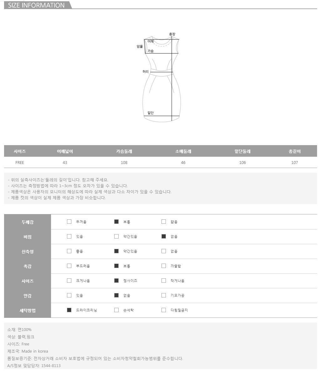 모델의 착용 컬러는 블랙 입니다.