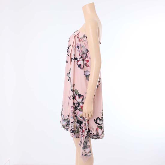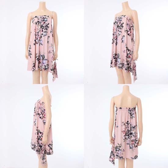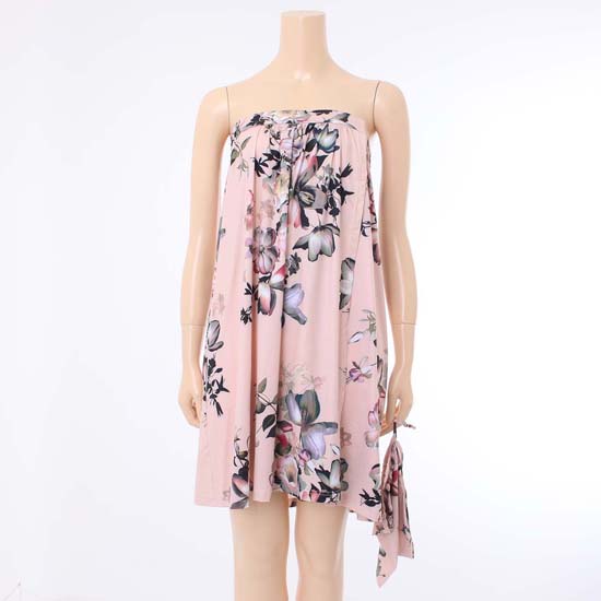 꽃나염 폴리 원단 샤워가운. 앞, 뒤 셔링을 주고 앞 여밈은 벨크로로 편안하게 벗고 입을 수 있으며