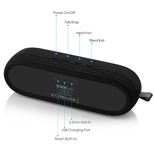 CRDCsmart Bluetooth Speakers, Wireless Speaker 2600mAh Rechargeable Battery 8 Hours Playing Dual 5W Stereo 2 Channel Drive 4.0, Waterproof IP65 Speaker for Outdoor Sport MP3/4 Music Phone Call