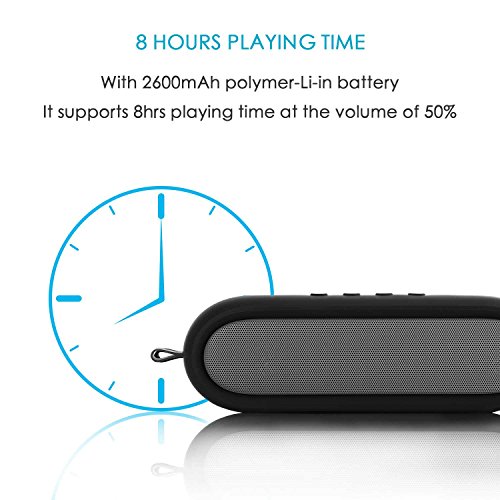Rechargeable Battery - Built in rechargeable 2600mAh battery, supports up to 8 hours playing time with a single charge. Built in high sensitivity MIC, 3.5mm Audio in Jack, connect the phone to answer and call the phone.