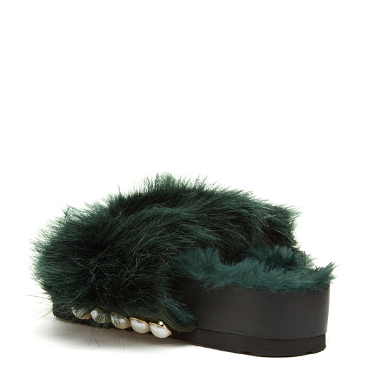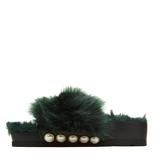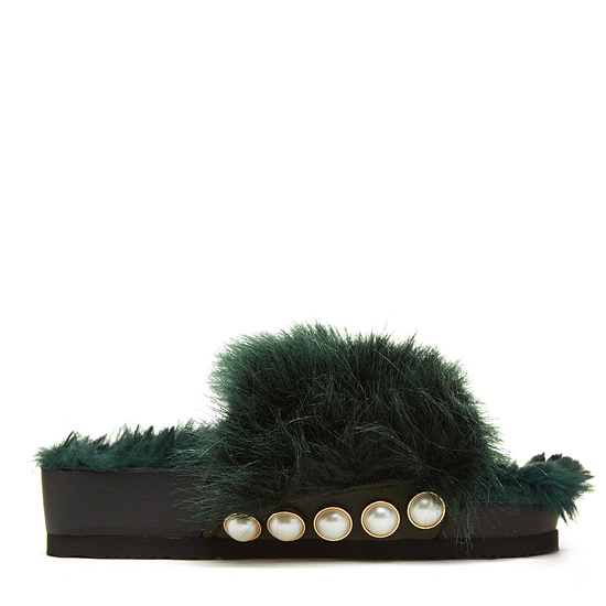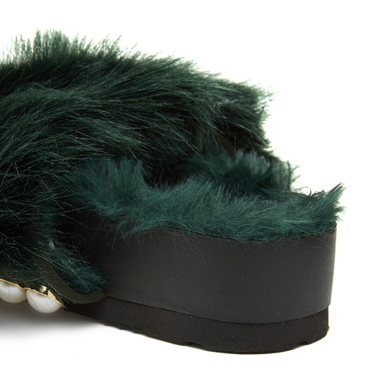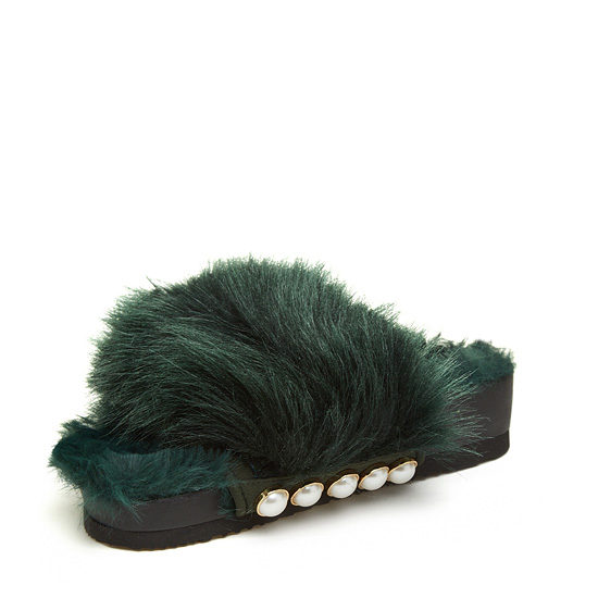 - 페이크퍼를 적용한 슈콤마보니의 시그니처 슬리퍼.