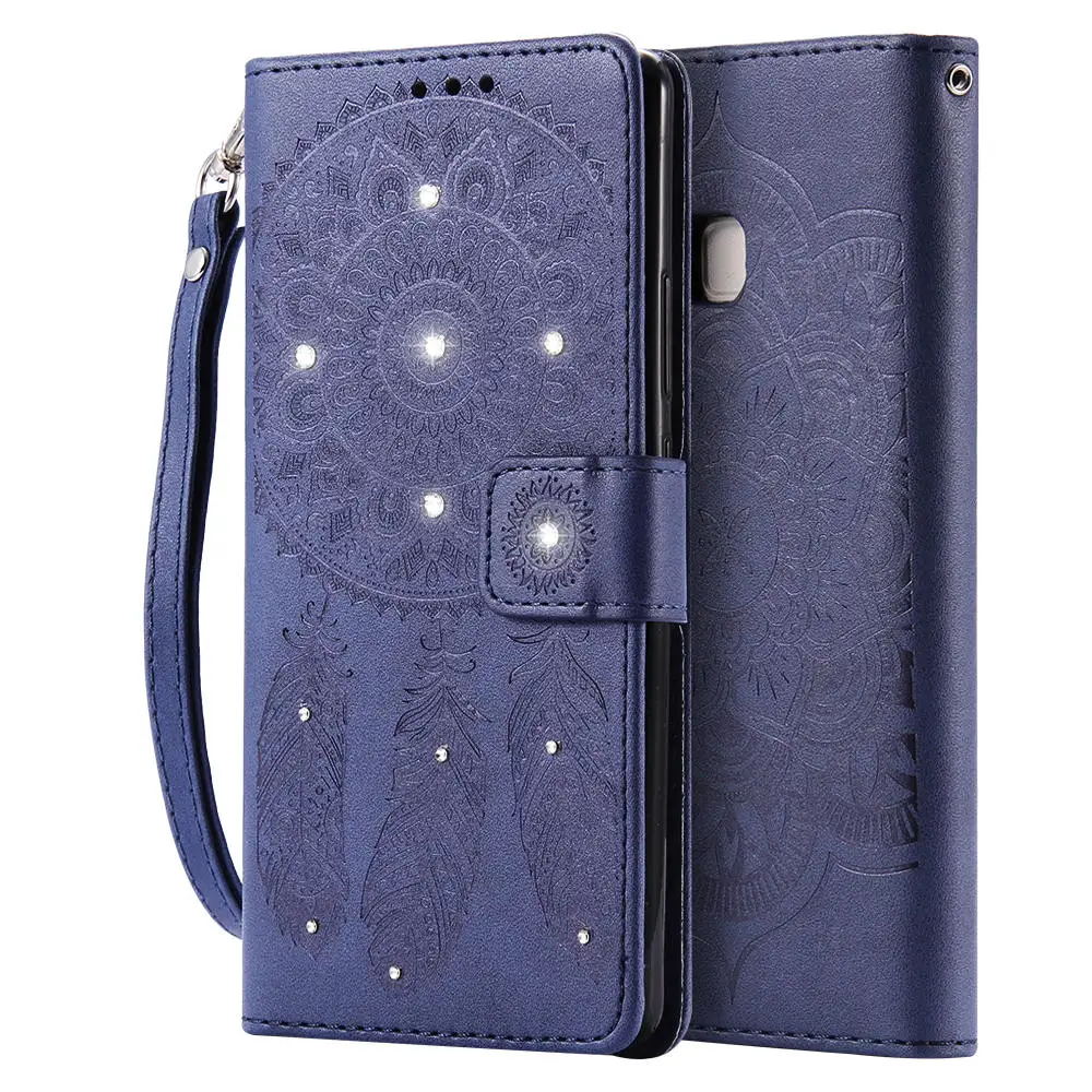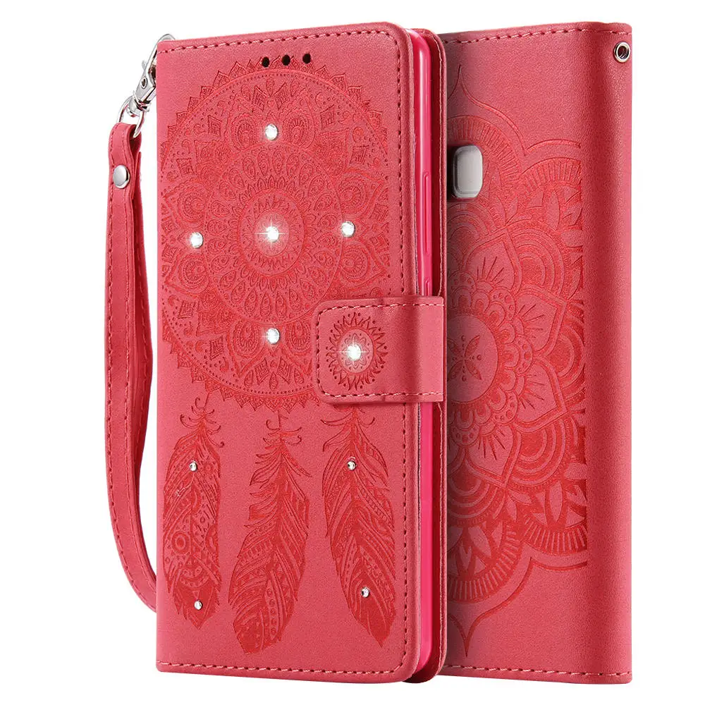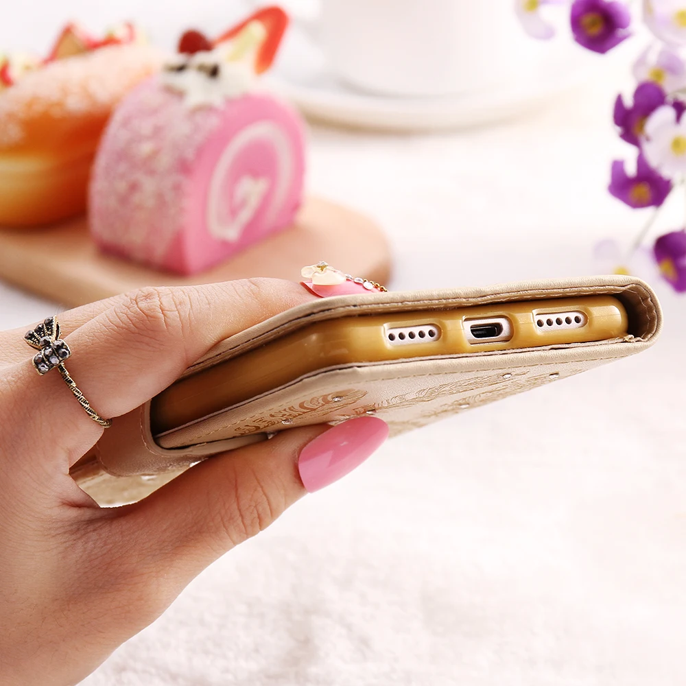 Feature1:Bling Glitter Diamond Rhinestone Flower Leather Wallet for HUAWEI P9