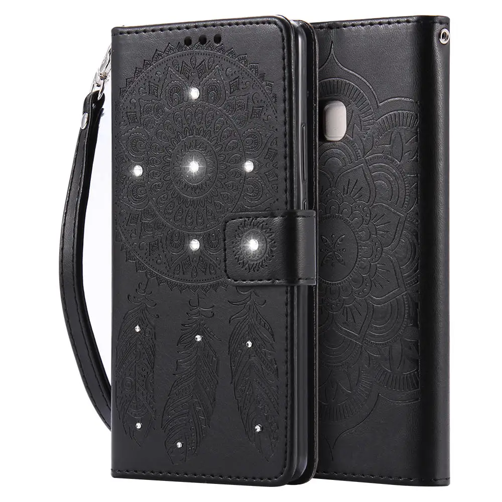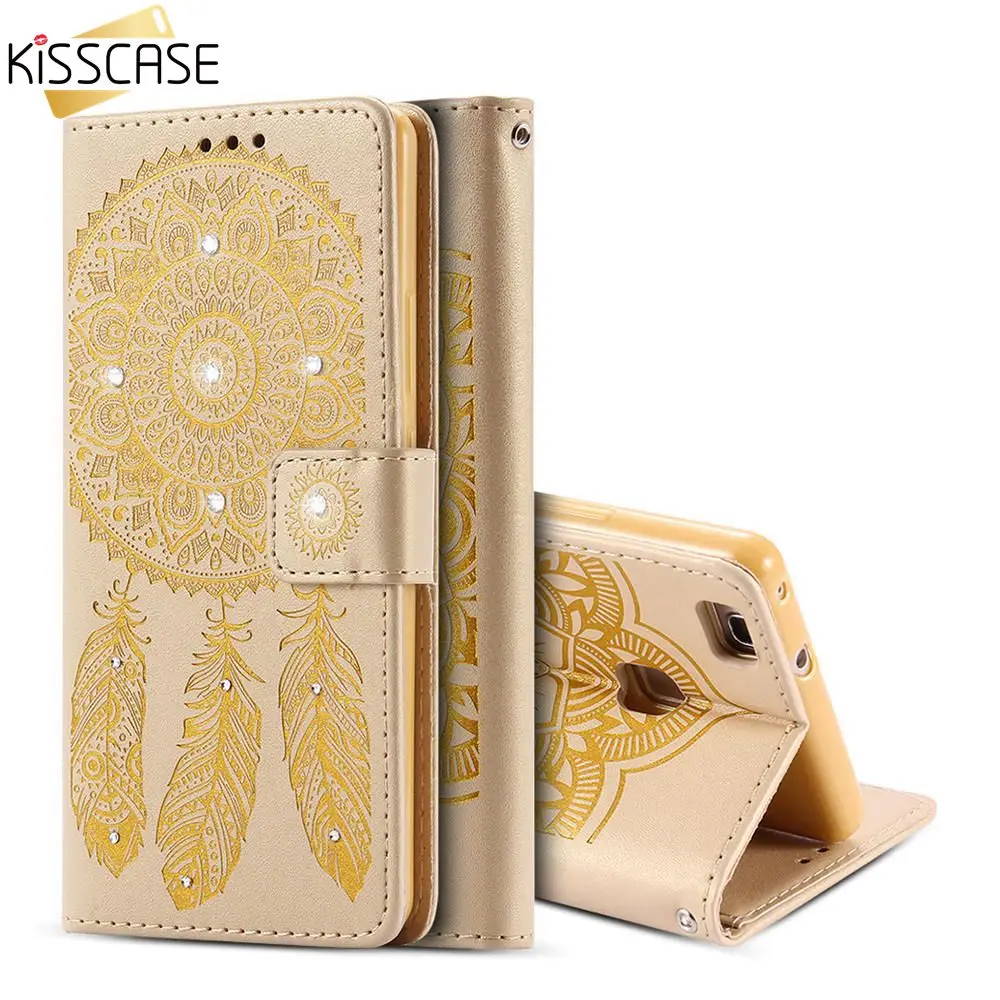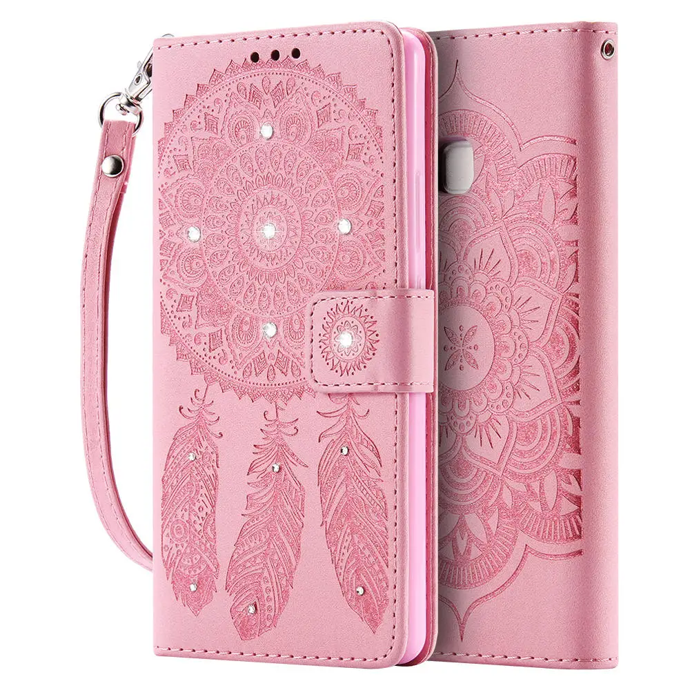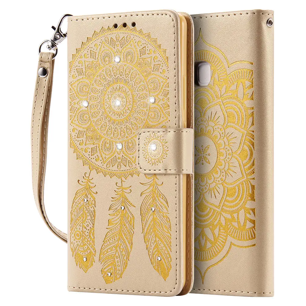 Feature1:Bling Glitter Diamond Rhinestone Flower Leather Wallet for HUAWEI P9