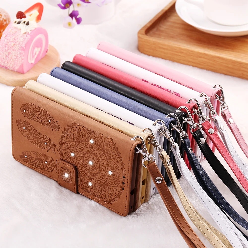Feature2:Magnetic Flip Stand Card Slot Lanyar Embossing Campanula Pattern