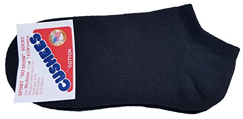 -. Feature : Cushees No-Show Double Thick socks / 75% Cotton, 23% Spandex, 2% Elastic / Women's shoe sizes 6 - 10 (sock size is 9-11) / 3 pairs, Made in USA / Cotton grown in USA